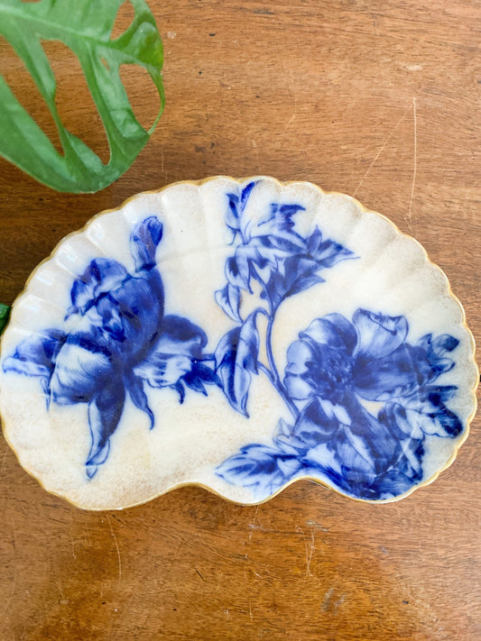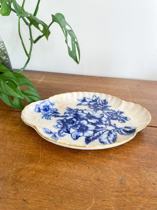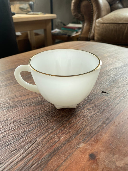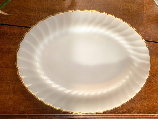 Anchor Hocking Gold Rimmed Milk Glass Tea and Snack Plate shell pattern 1950s-1960s