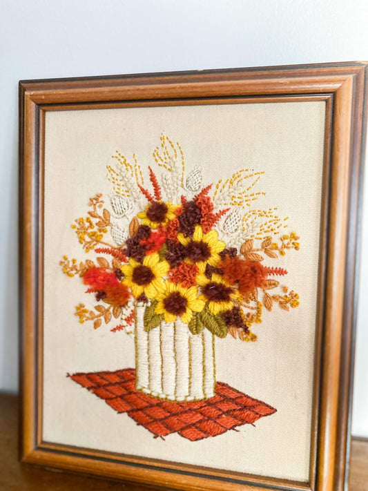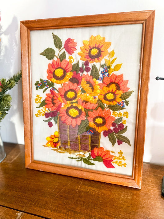 Vintage Floral Fall Sunflower Bouquet Crewel Wall Art