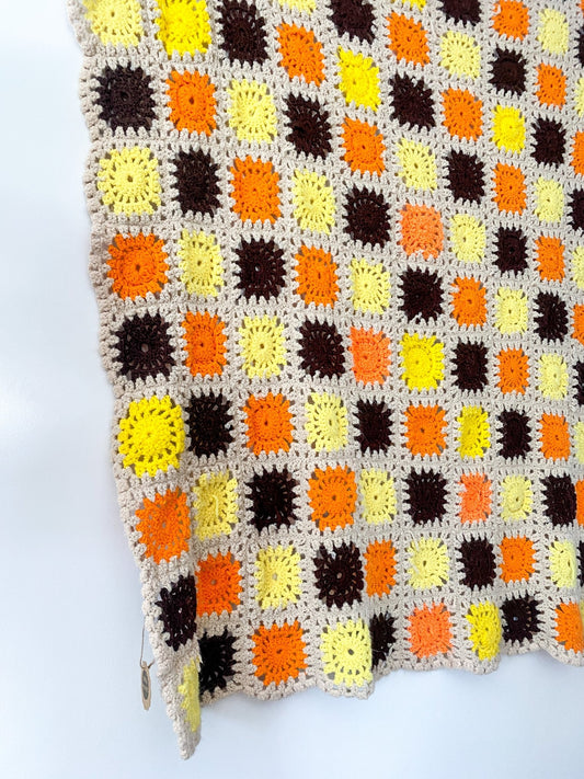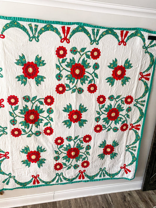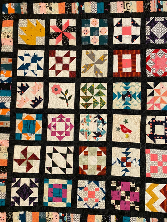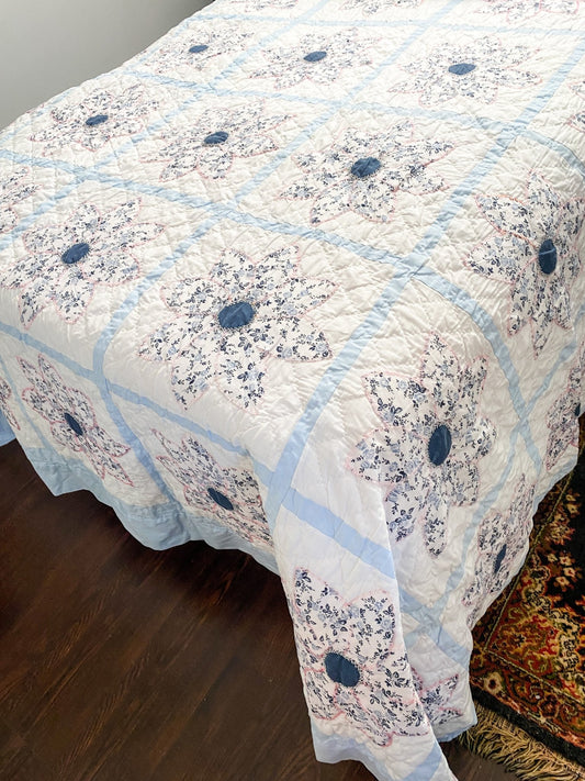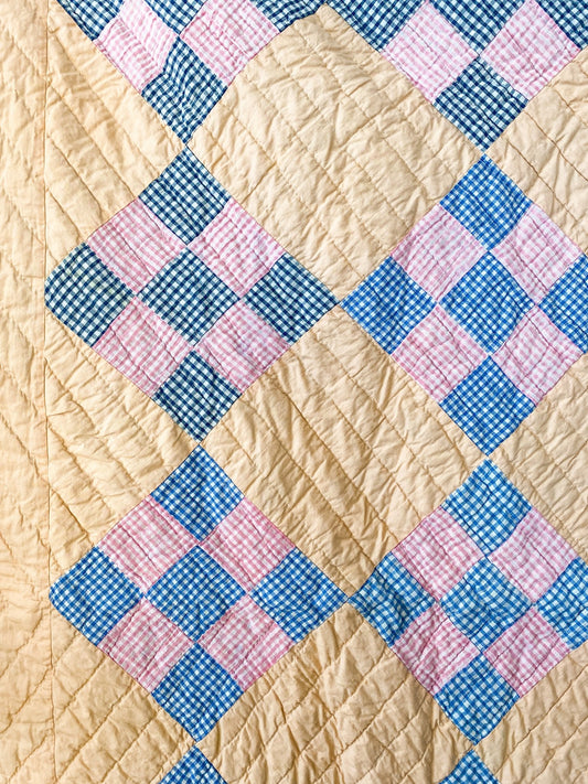 Vintage Handmade Quilt with Orange, Blue & Pink Pattern