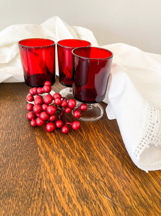 Sold outSet of 7 Small Ruby Stemmed Glasses