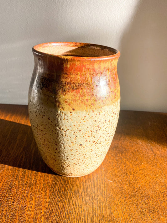 Vintage Handmade Quilt with Orange, Blue & Pink Pattern