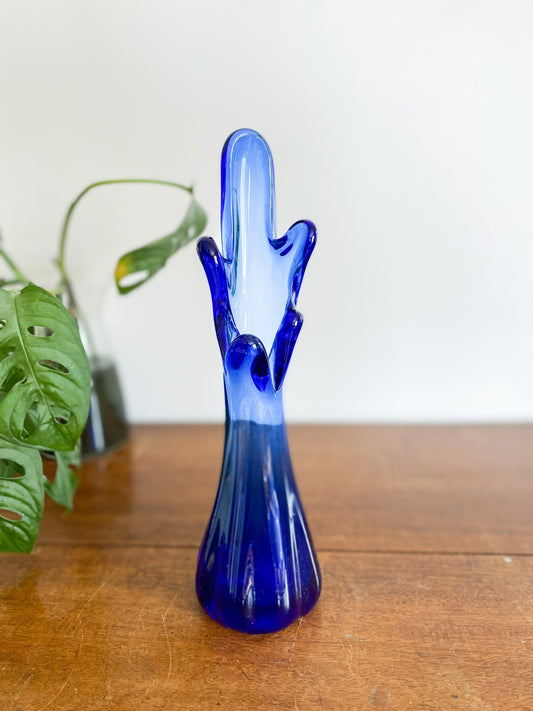 Vintage MCM Swung Glass Vase in Peacock Blue