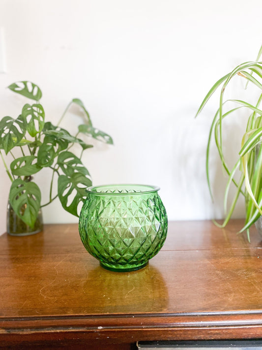 Vintage Hand-Blown Diamond Quilted Green Glass Empoli Decanter