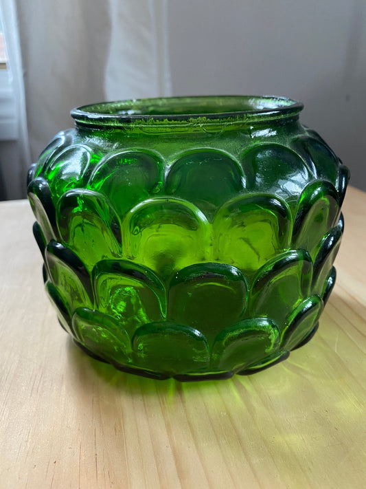 Vintage Emerald Green Glass Bowl by E. O. Brody Vase with Large Fish Scale Pattern